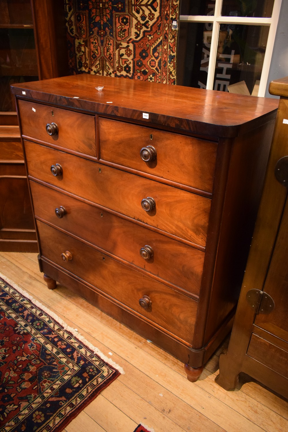 A VICTORIAN FLAME MAHOGANY FIVE DRAWER CHEST (126H x 118W x 53D CM)