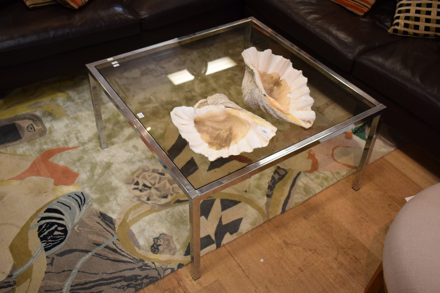 A CHROME AND GLASS COFFEE TABLE