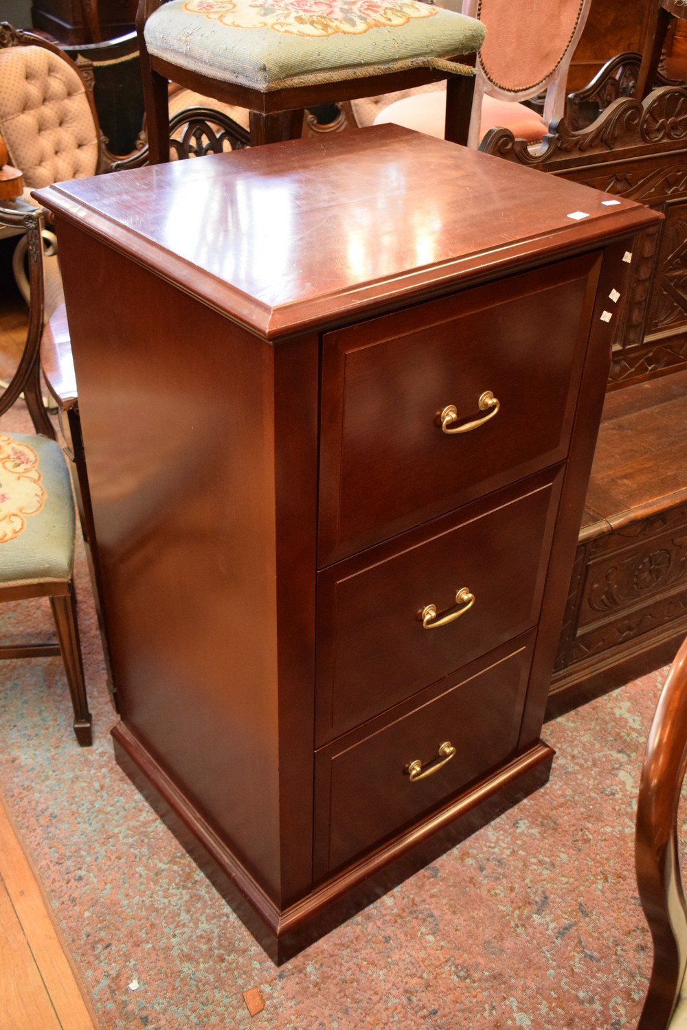 A THREE DRAWER TIMBER FILING CABINET