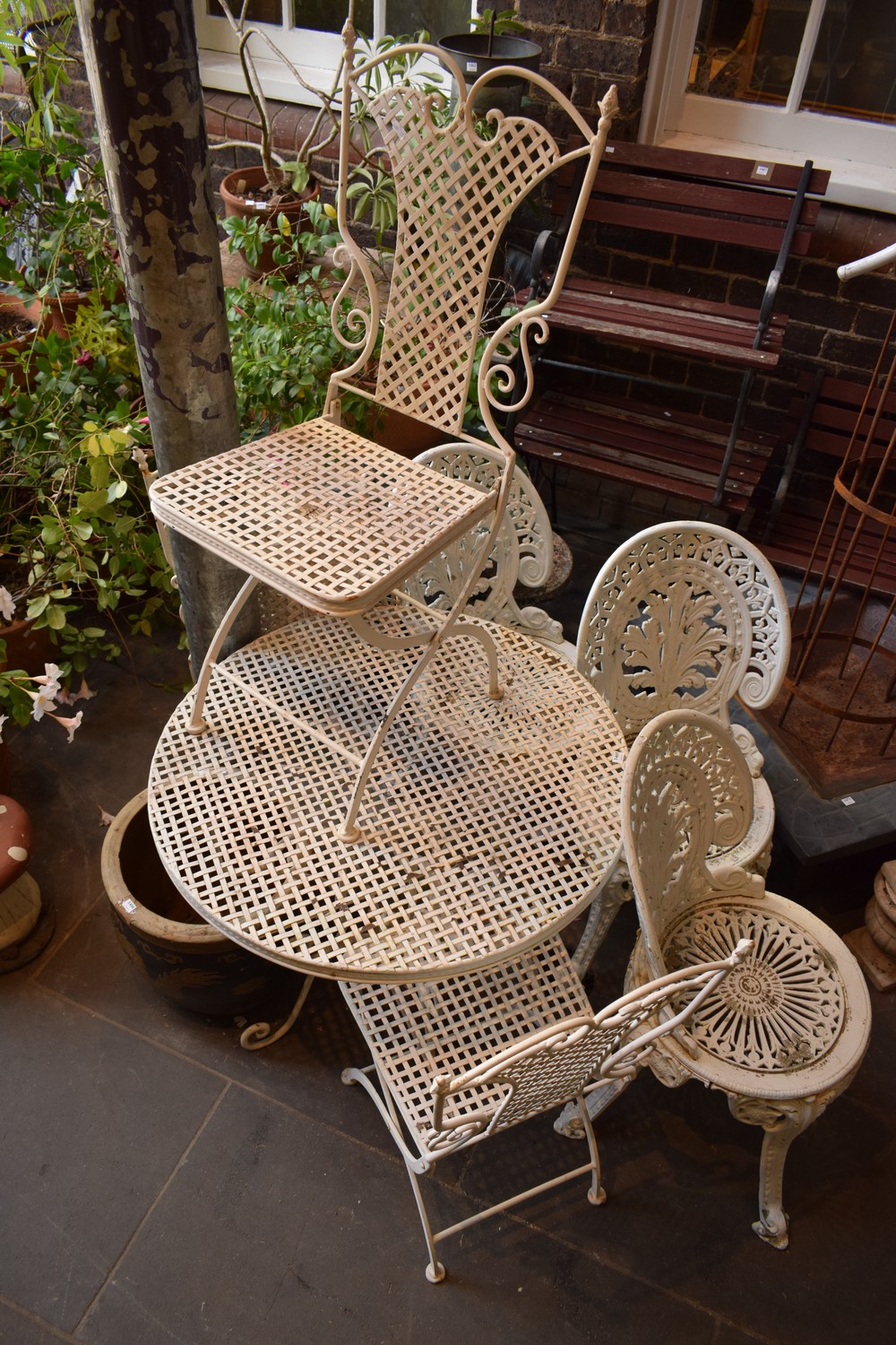 A FRENCH FIVE PIECE BISTRO SETTING