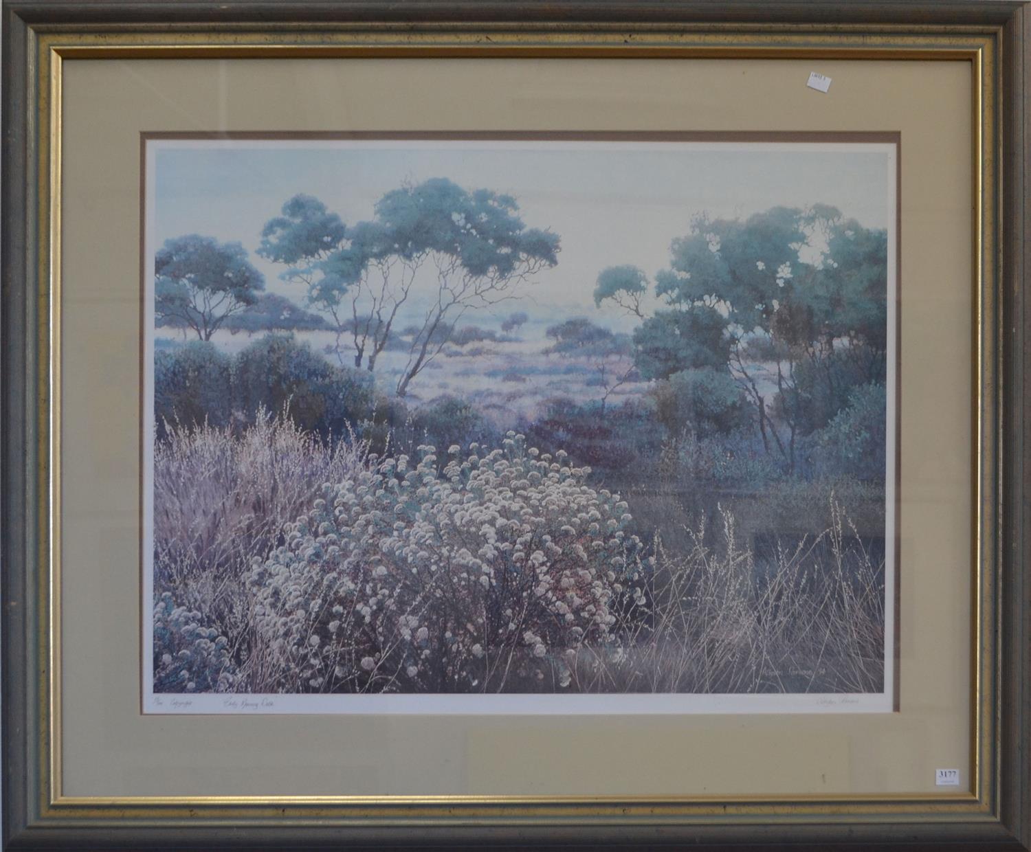 ALLYSON PARSONS, EARLY MORNING WALK, LITHOGRAPH 25/500, 58 X 78CM, FRAME SIZE: 94 X 111CM, CONDITION: DISCOLOURATION THROUGHOUT