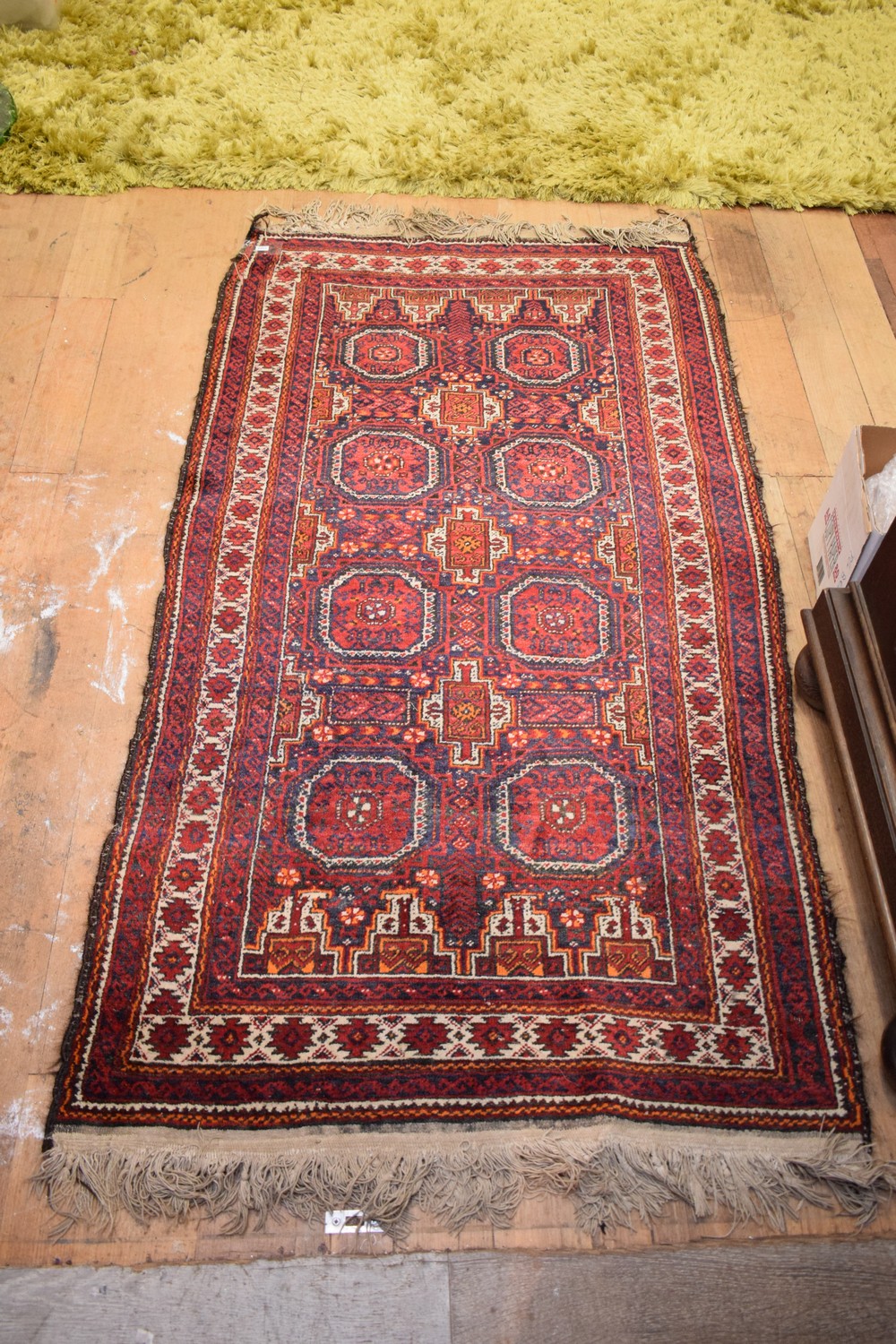 A TRADITIONAL RUG IN RED BLUE (A/F)