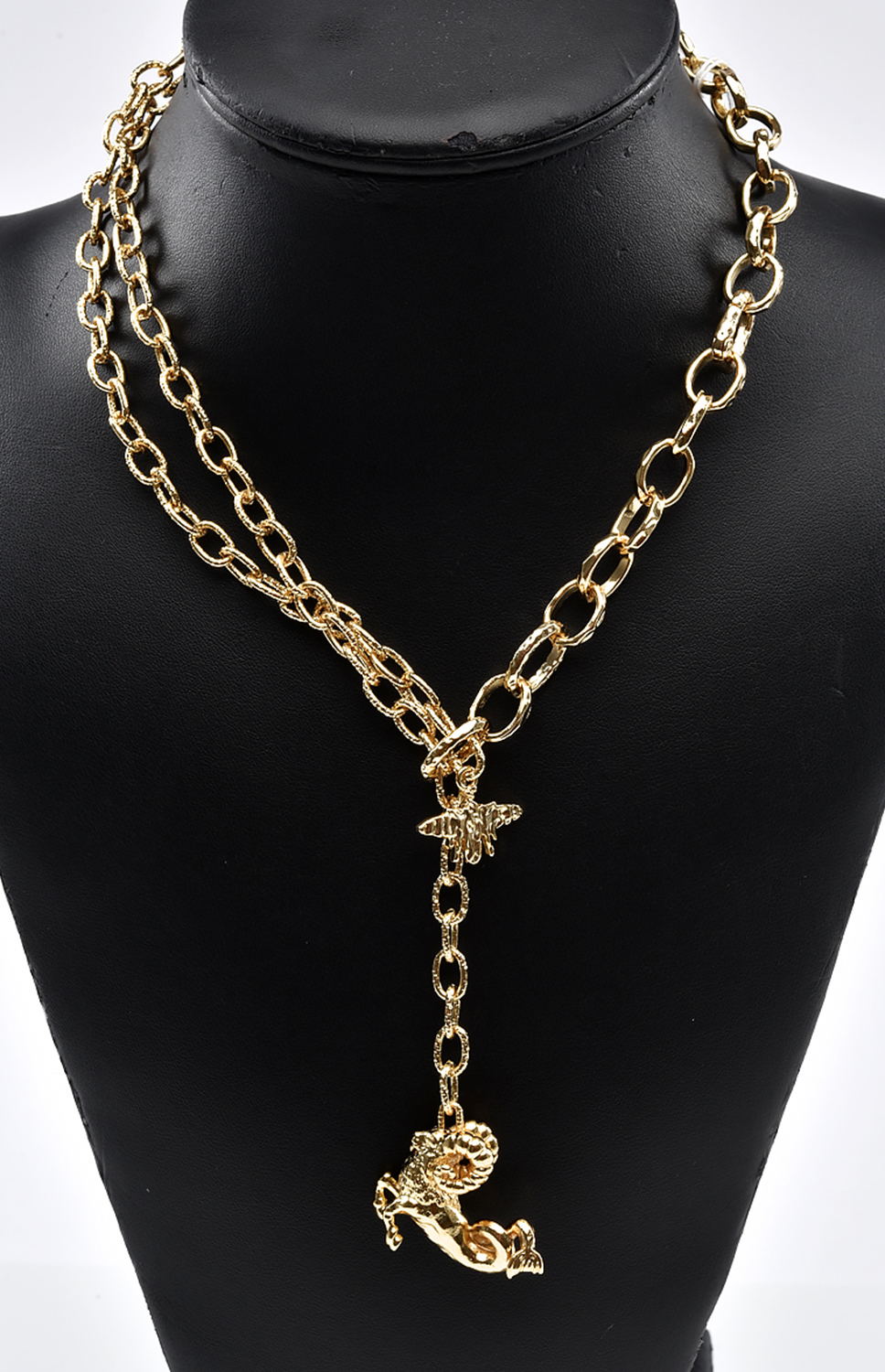 A COSTUME NECKLACE WITH 'TAURUS' PENDANT TO AN INVISIBLE CLASP