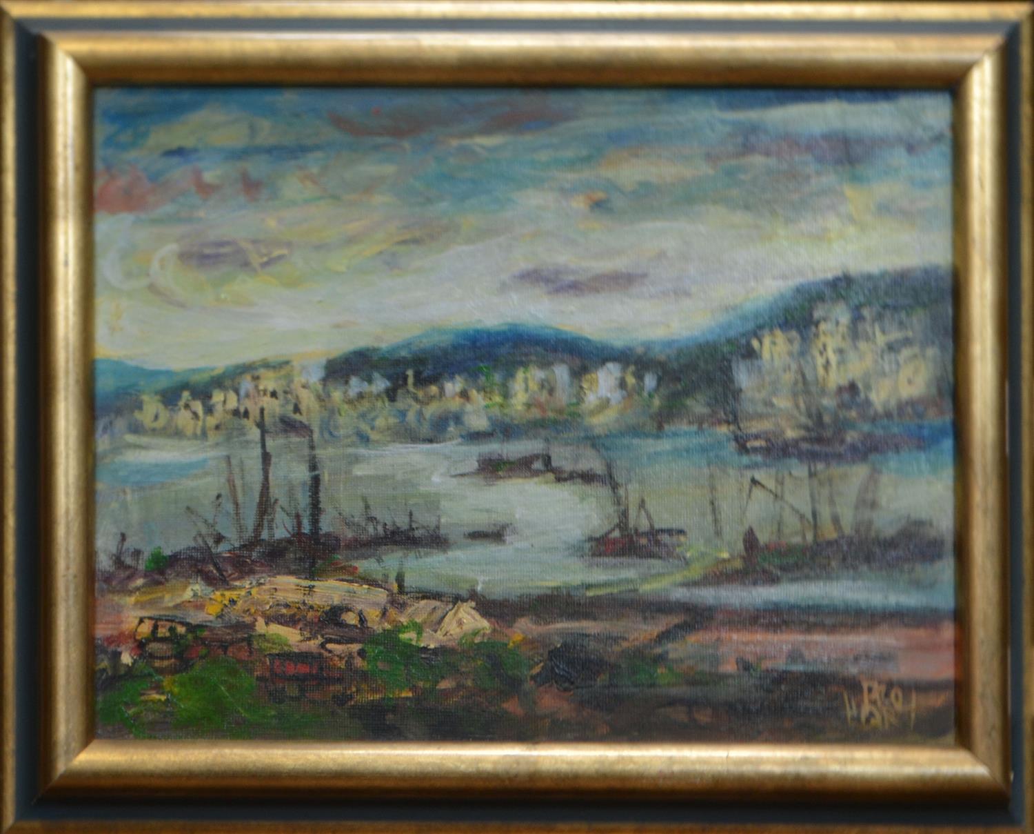 PRO HART, HONG KONG, OIL ON BOARD, TITLED ON LABEL VERSO FROM PEACH'S GALLERY, MELBOURNE, 20 X 29CM, FRAME SIZE: 29.5 X 36CM, CONDITION: GOOD CONDITION, NO FAULTS