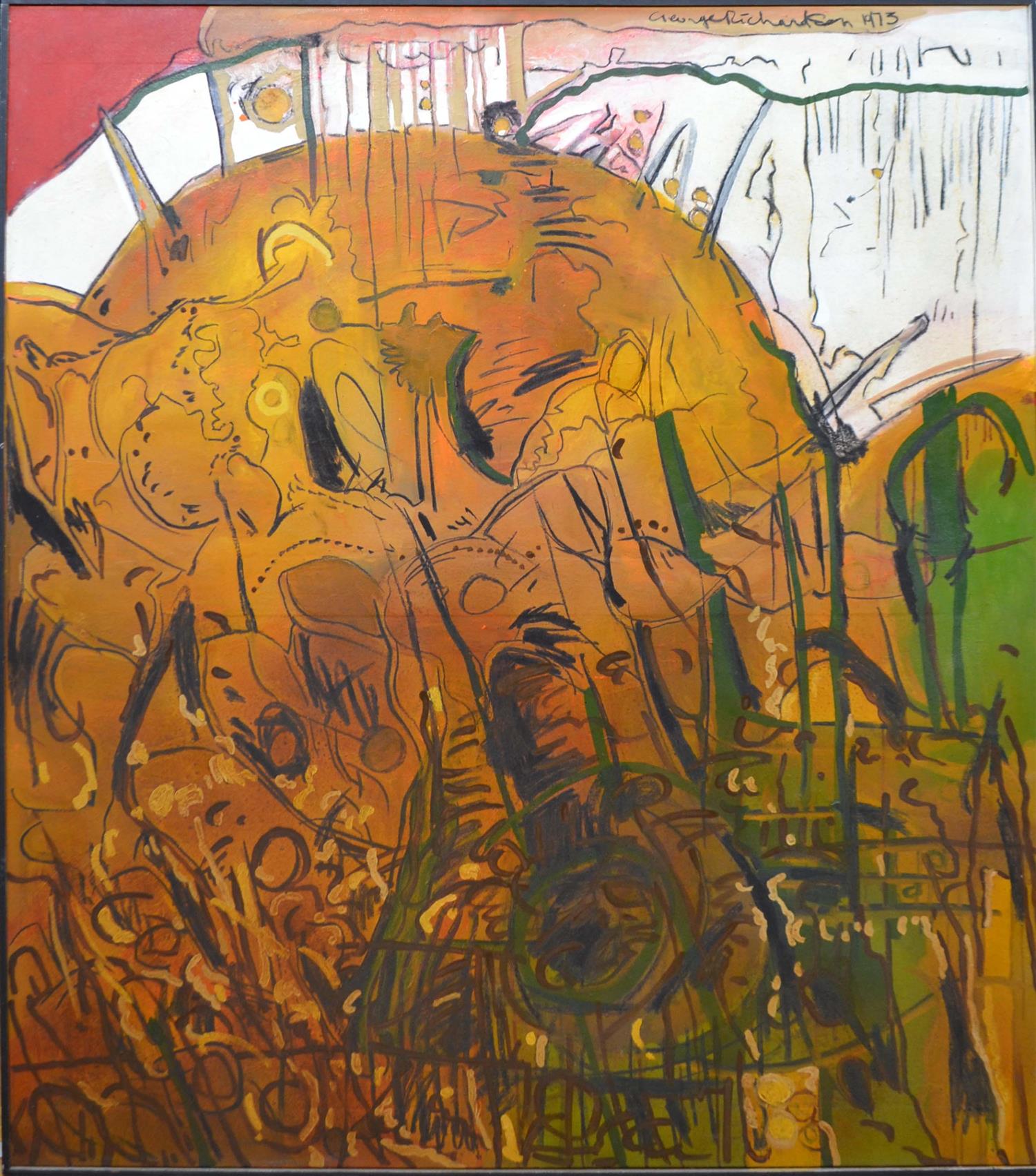 GEORGE RICHARDSON, ABSTRACT, OIL ON CANVAS, IMAGE SIZE: 138 X 122CM, FRAME SIZE: 139 X 124CM, CONDITION: GOOD, WEAR TO FRAME, INDENTATIONS FROM STRETCHER BAR VISIBLE