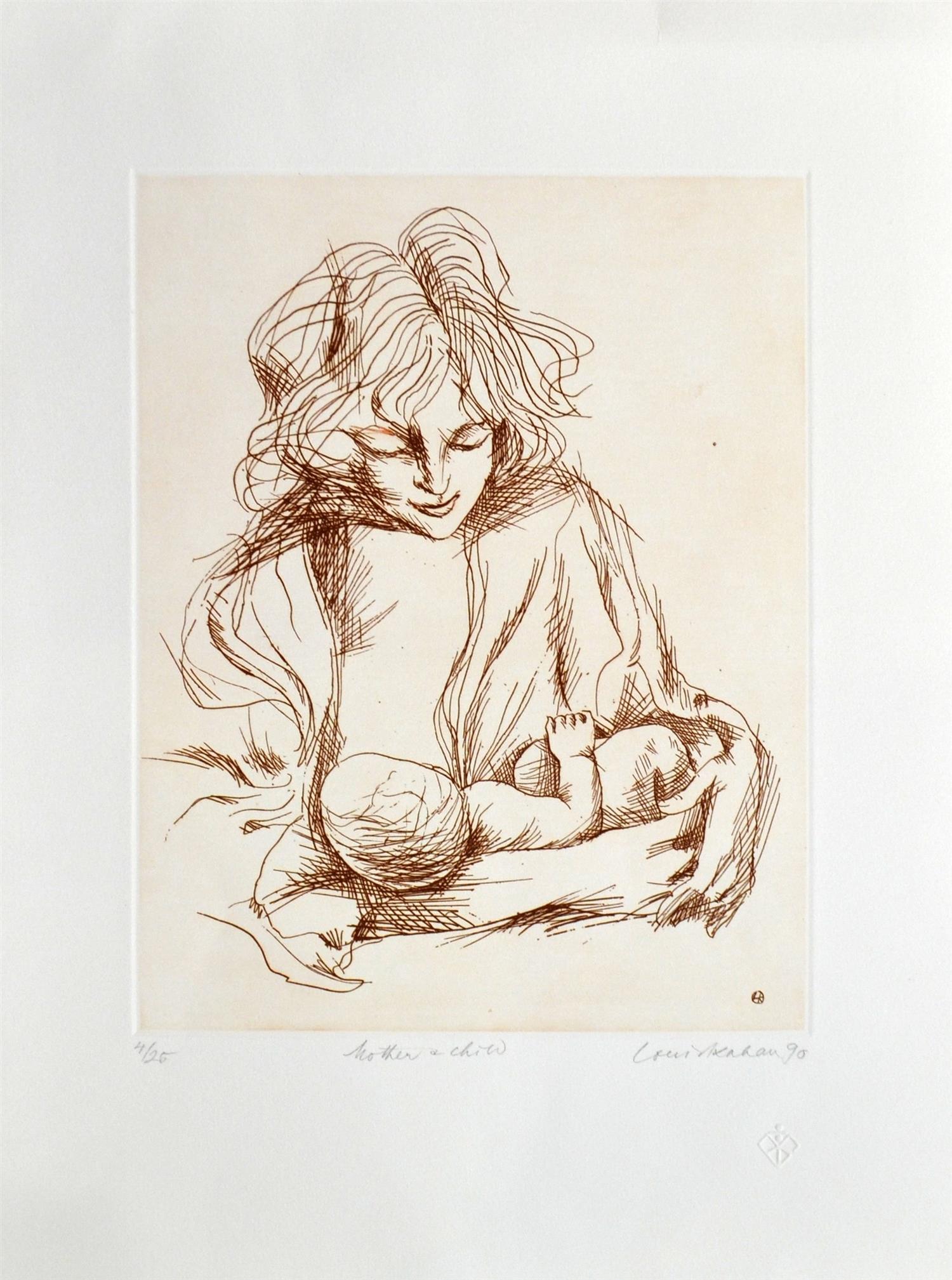 LOUIS KAHAN, MOTHER AND CHILD, ETCHING 4/25, IMAGE SIZE: 35 X 27CM, CONDITION: GOOD CONDITION WITH NO FAULTS TO REPORT, UNFRAMED, PAPER SIZE: 54 X 40CM