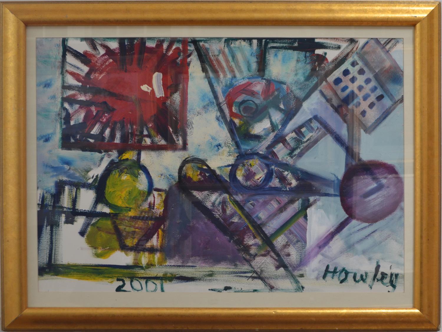 JOHN HOWLEY, UNTITLED 2001, MIXED MEDIA ON PAPER, 60 X 80CM FRAME SIZE: 80 X 99CM, CONDITION: VERY GOOD, NO FAULTS