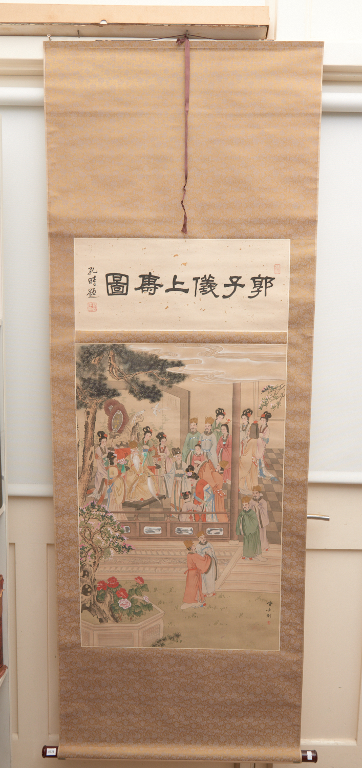 A CHINESE SCROLL, TOTAL HEIGHT 191CM, 68CM WIDE