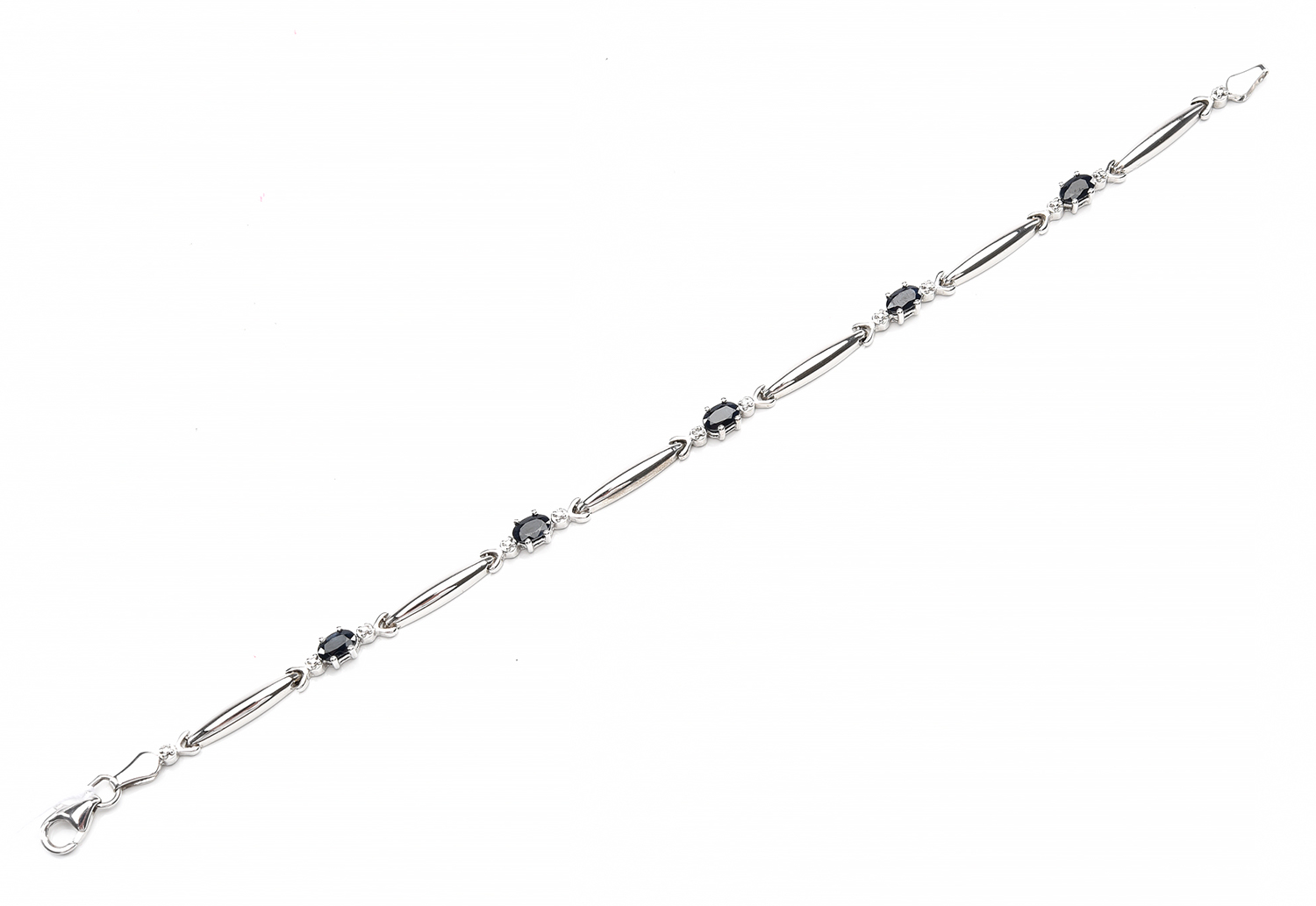 A SAPPHIRE AND DIAMOND BRACELET IN 10CT WHITE GOLD