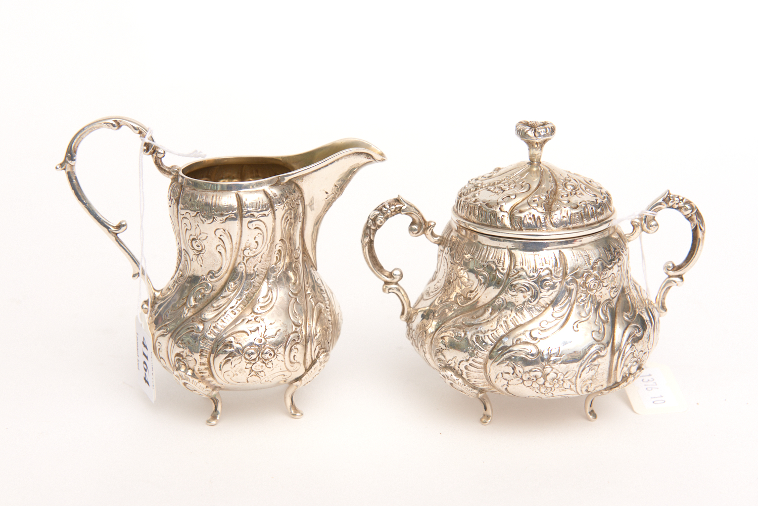 A GERMAN 800 SILVER MILK JUG AND LIDDED SUGAR POT