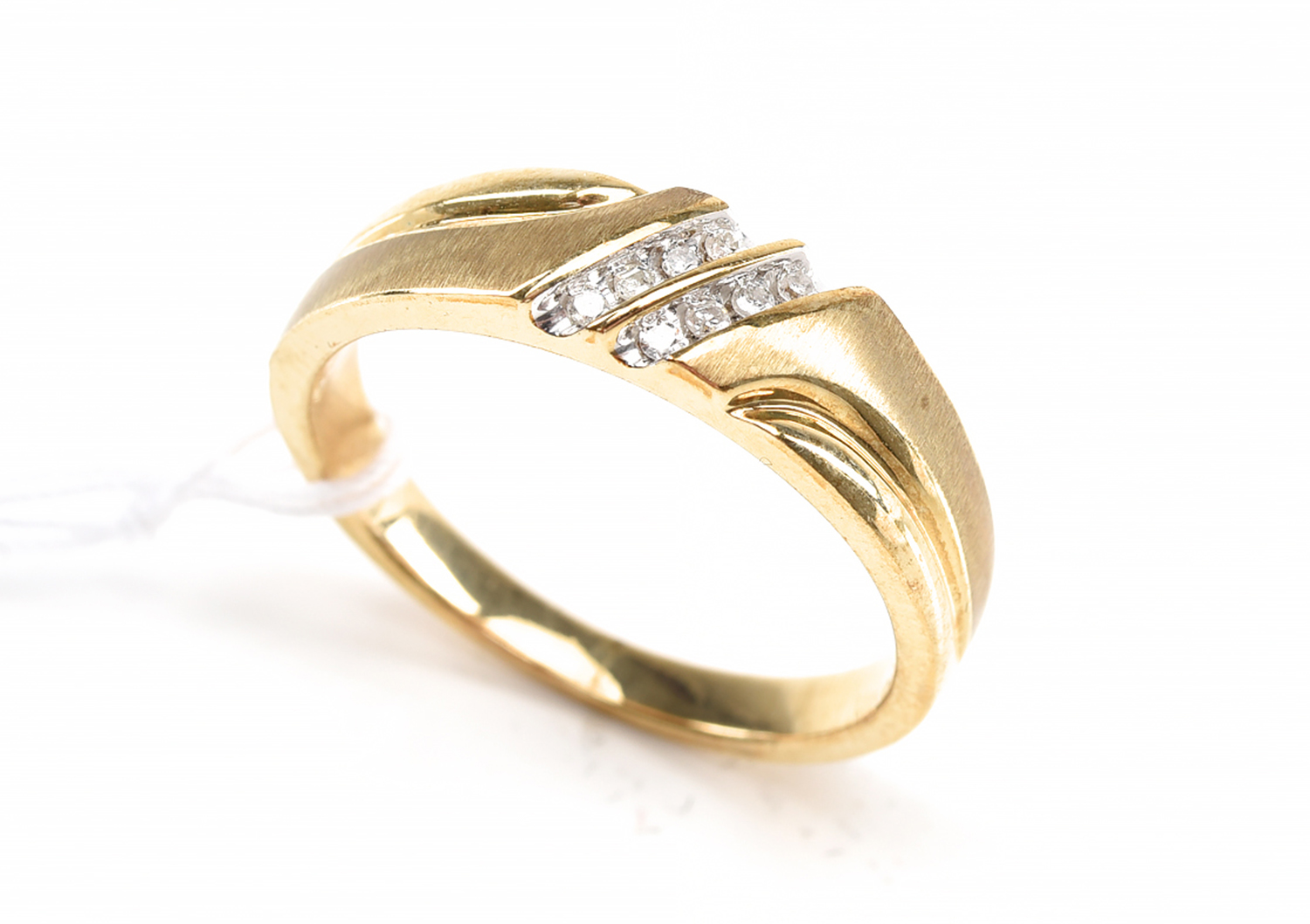 A THREE STONE DIAMOND RING - Comprising three round brilliant cut diamonds in 18ct rose gold, ring size R.
