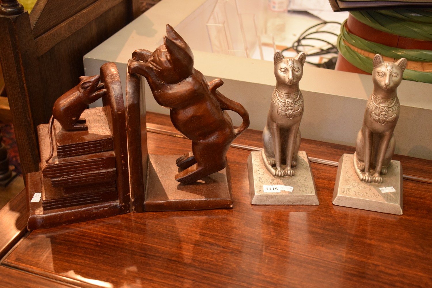 TWO PAIRS OF BOOKENDS FEATURING CATS AND MICE