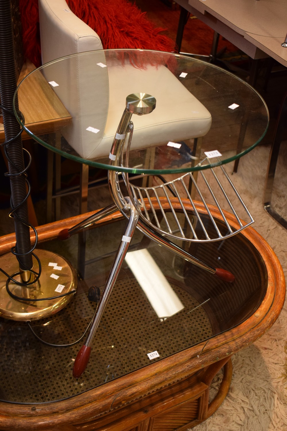 A GLASS TOP SIDE TABLE WITH MAGAZINE RACK