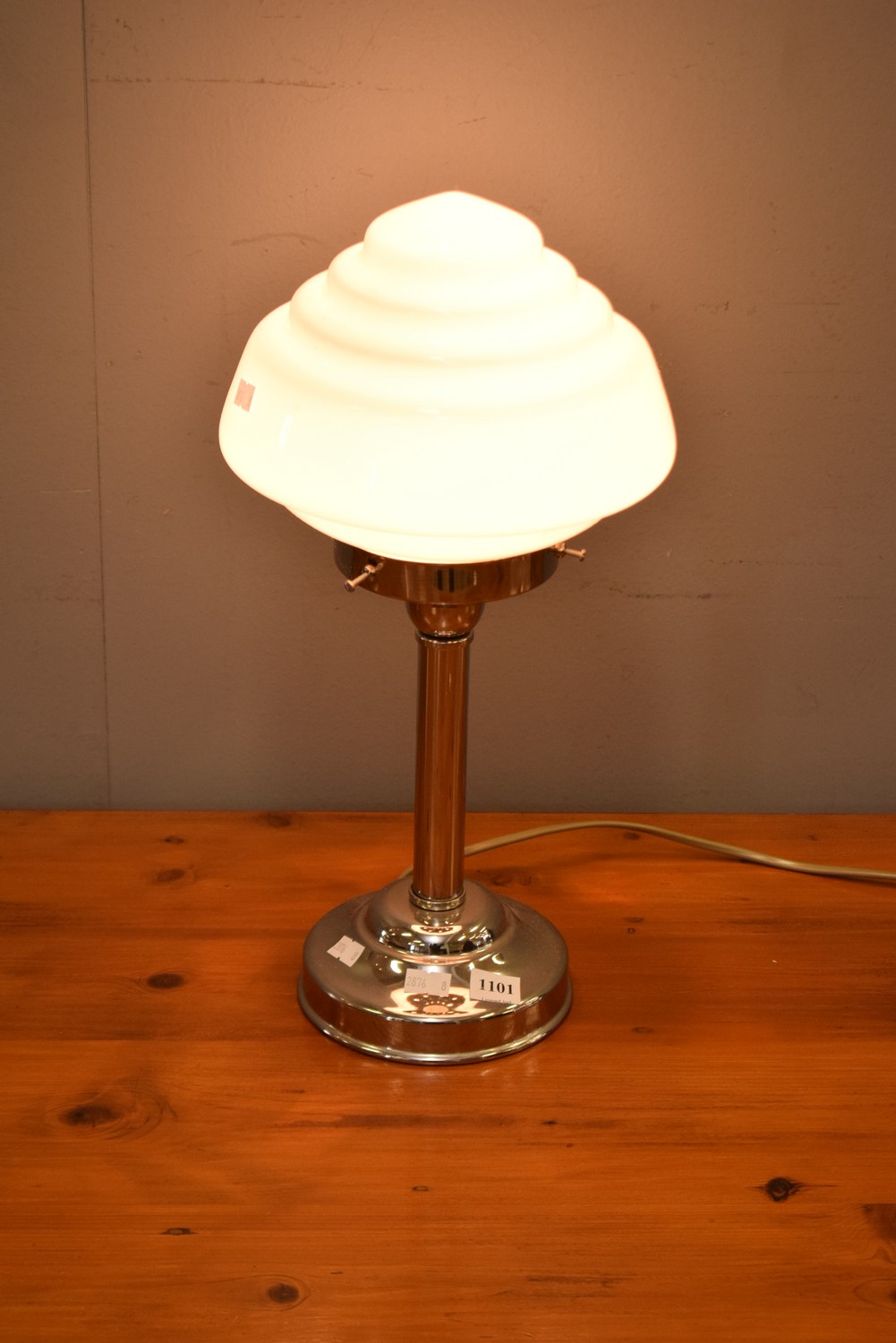 AN ART DECO STYLE TABLE LAMP (A/F - CRACK TO GLASS)