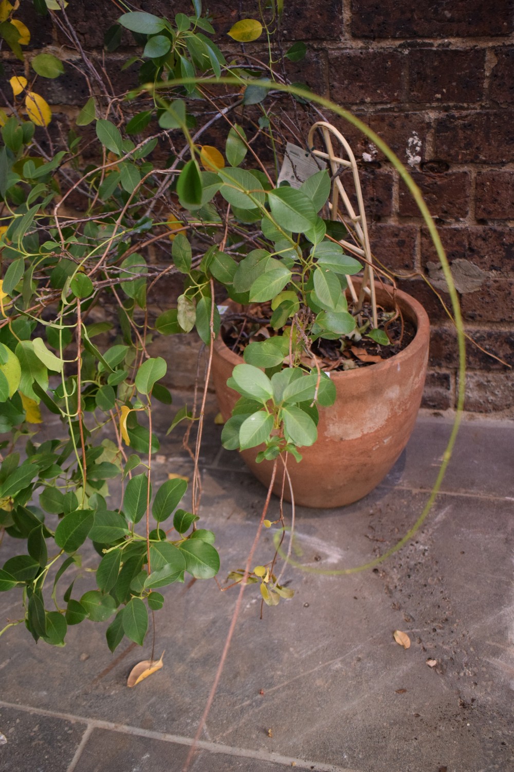 A REGAL RUBY MANDEVILLA IN TERRACOTTA POT
