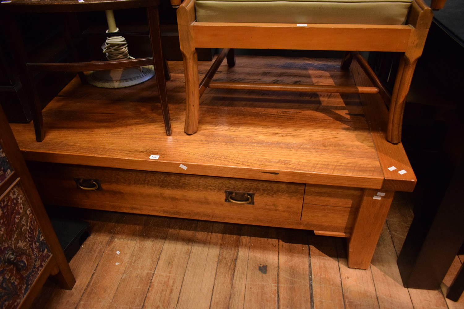 A LARGE TWO DRAWER COFFEE TABLE (45H x 150W x 88D CM) (PLEASE NOTE THIS ITEM MUST BE REMOVED BY CLIENTS OR CARRIERS AT THE CUSTOMERS EXPENSE)