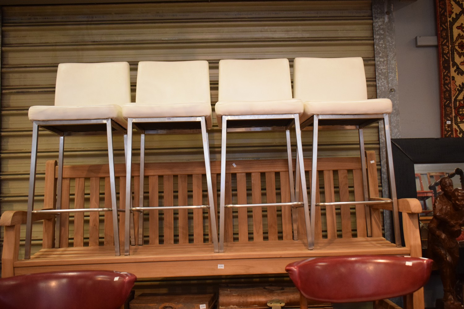 A SET OF FOUR CONTEMPORARY WHITE VINYL BAR STOOLS