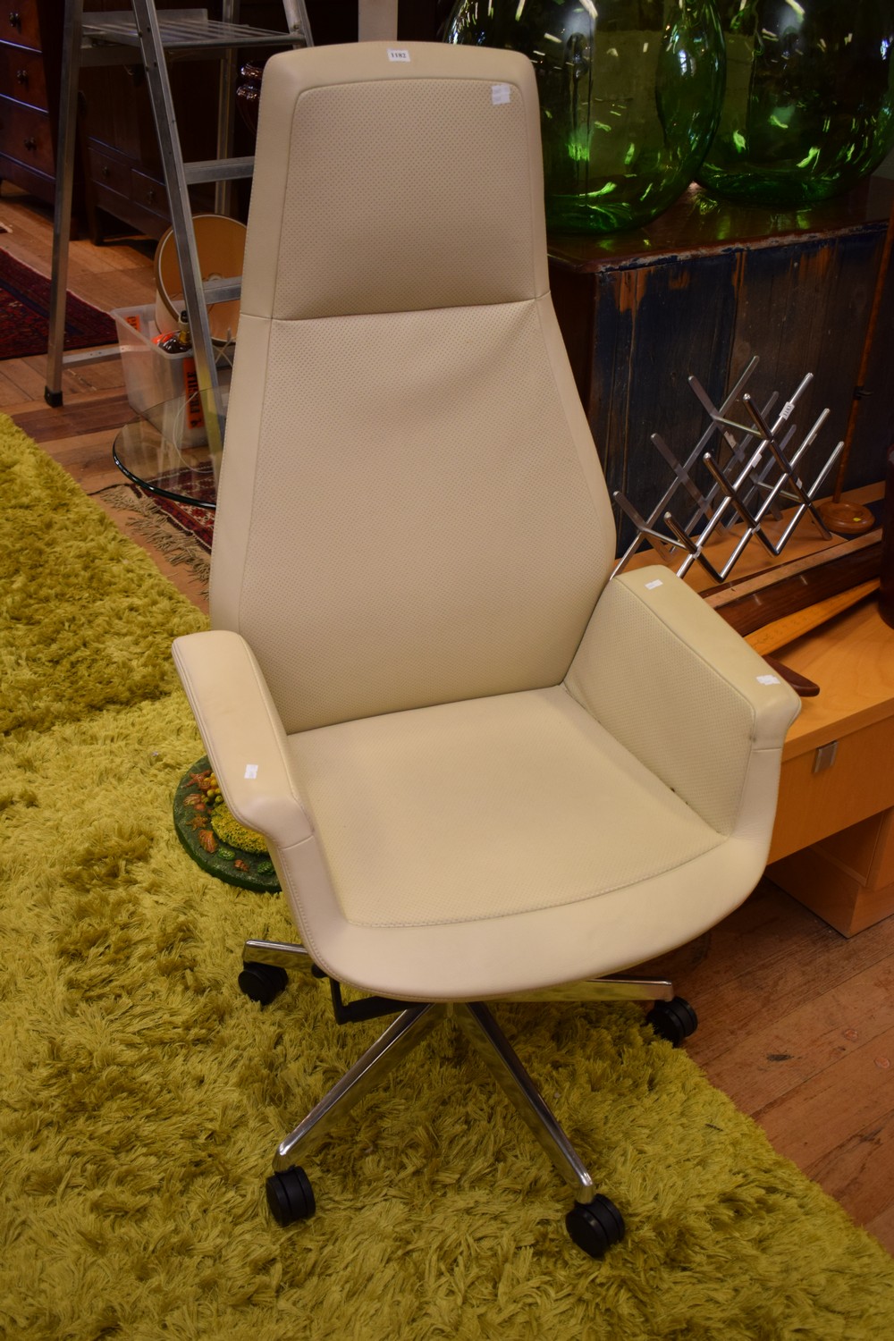 A CREAM UPHOLSTERED LEATHER OFFICE CHAIR