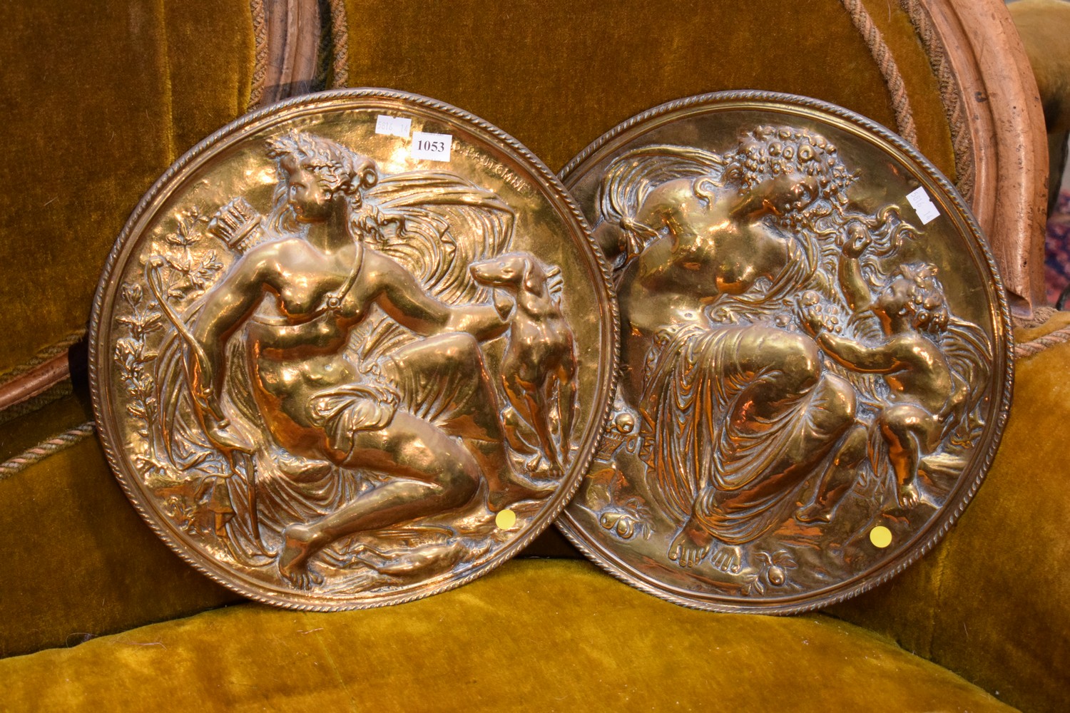 A PAIR OF GOLD EFFECT CLASSICAL STYLE WALL PLATES