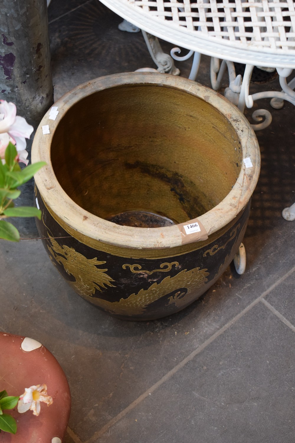 A LARGE POT WITH CHINESE DRAGON MOTIF