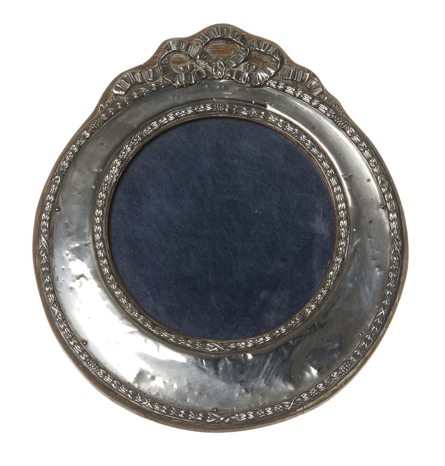 A CIRCULAR STERLING SILVER PHOTO FRAME
