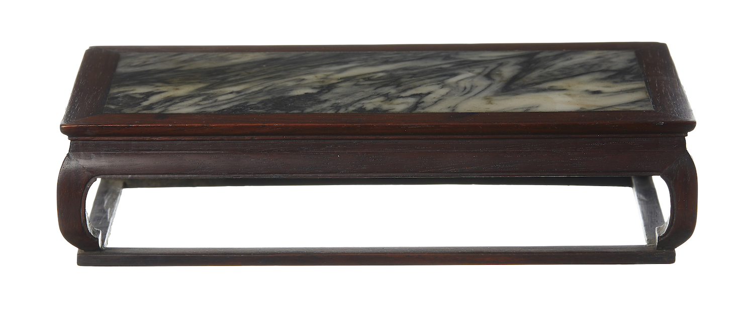 Rosewood with marble insert.