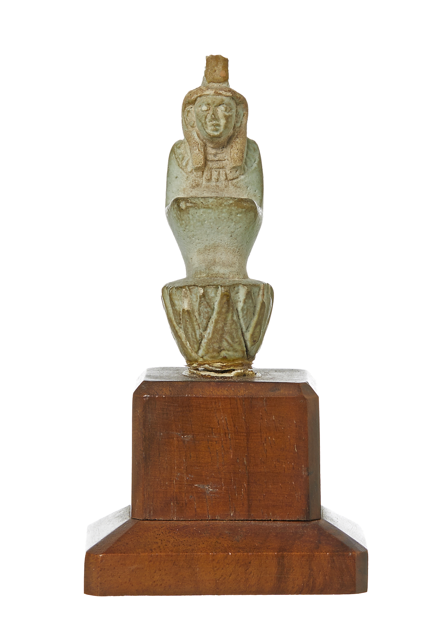 Figure broken at base where plugged into stand (with evidence of peg repair). Otherwise in good condition. Existing statement and photos.