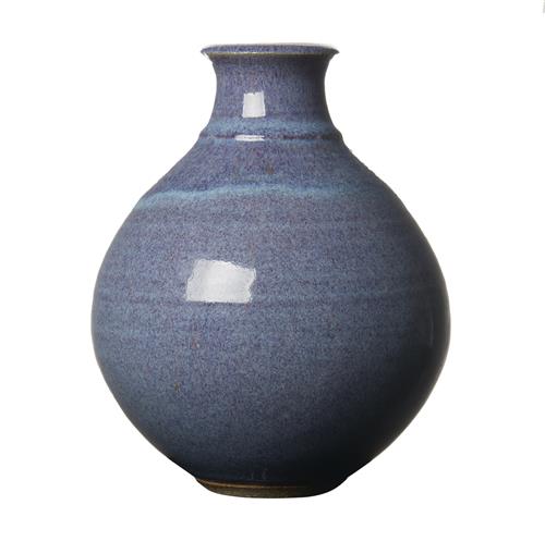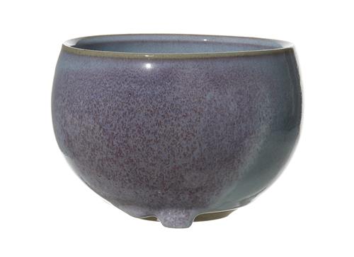 Both heavily glazed in blue, grey and brick red hues. The bowl with a circular foot supported by the drip glaze. The vase of baluster shape. Both with impressed artist's marks.