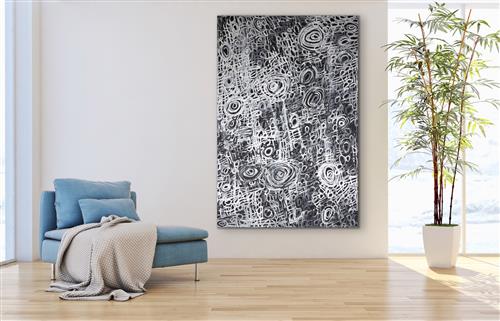 In very good condition, as new. Minor foreign matter has settled on the canvas surface, typical for works of this nature. The work is stretched with no additional framing.