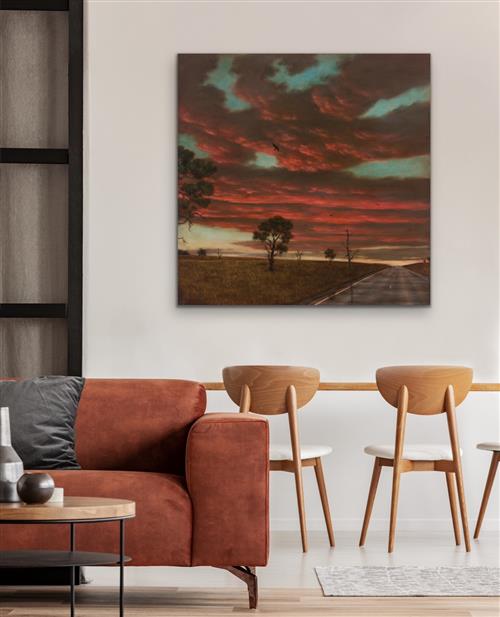 The artwork is in good condition. There are some surface marks to the far edges and corners, likely as the work has come into contact with another object/artwork. Some light wear to the corners. On the right hand side of the work there are two small areas of paint that appear to have been touched up by the artist, thus having a slightly different surface finish to the remainder of the painting.