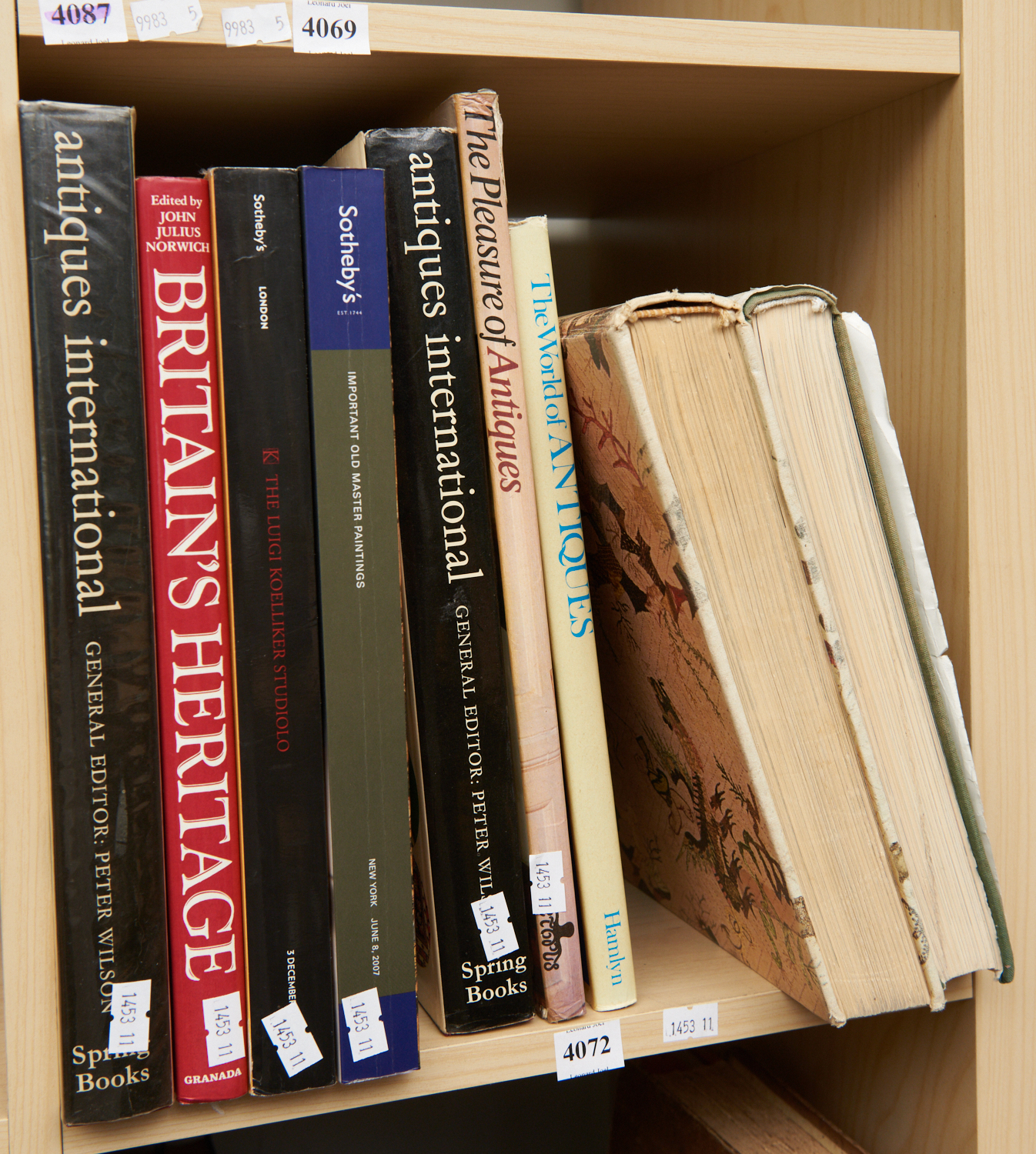 A SHELF OF BOOKS RELATING TO ANTIQUE FURNITURE