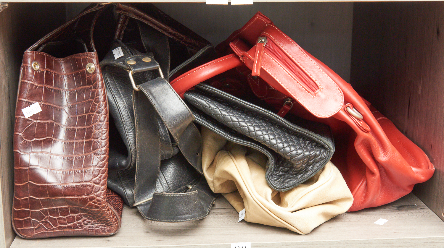 A COLLECTION OF VINTAGE HANDBAGS INCLUDING BALLY AND EMBOSSED CROCODILE STYLE LEATHER