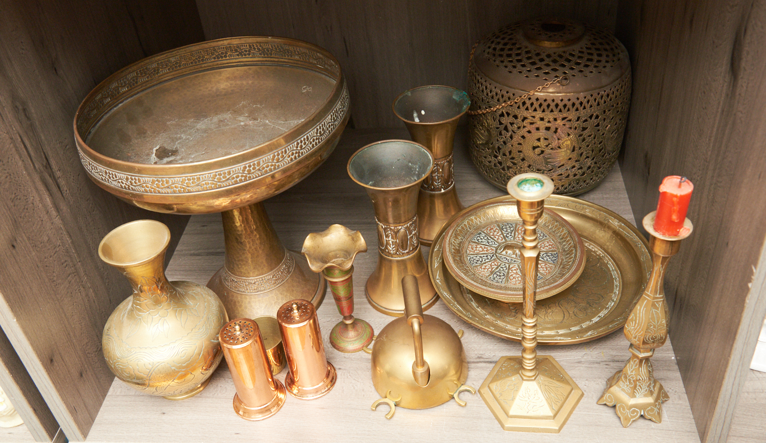 A COLLECTION OF BRASS WARES, INCLUDING VASES, BOWLS AND A COMPORT WITH EMBOSSED DECORATION