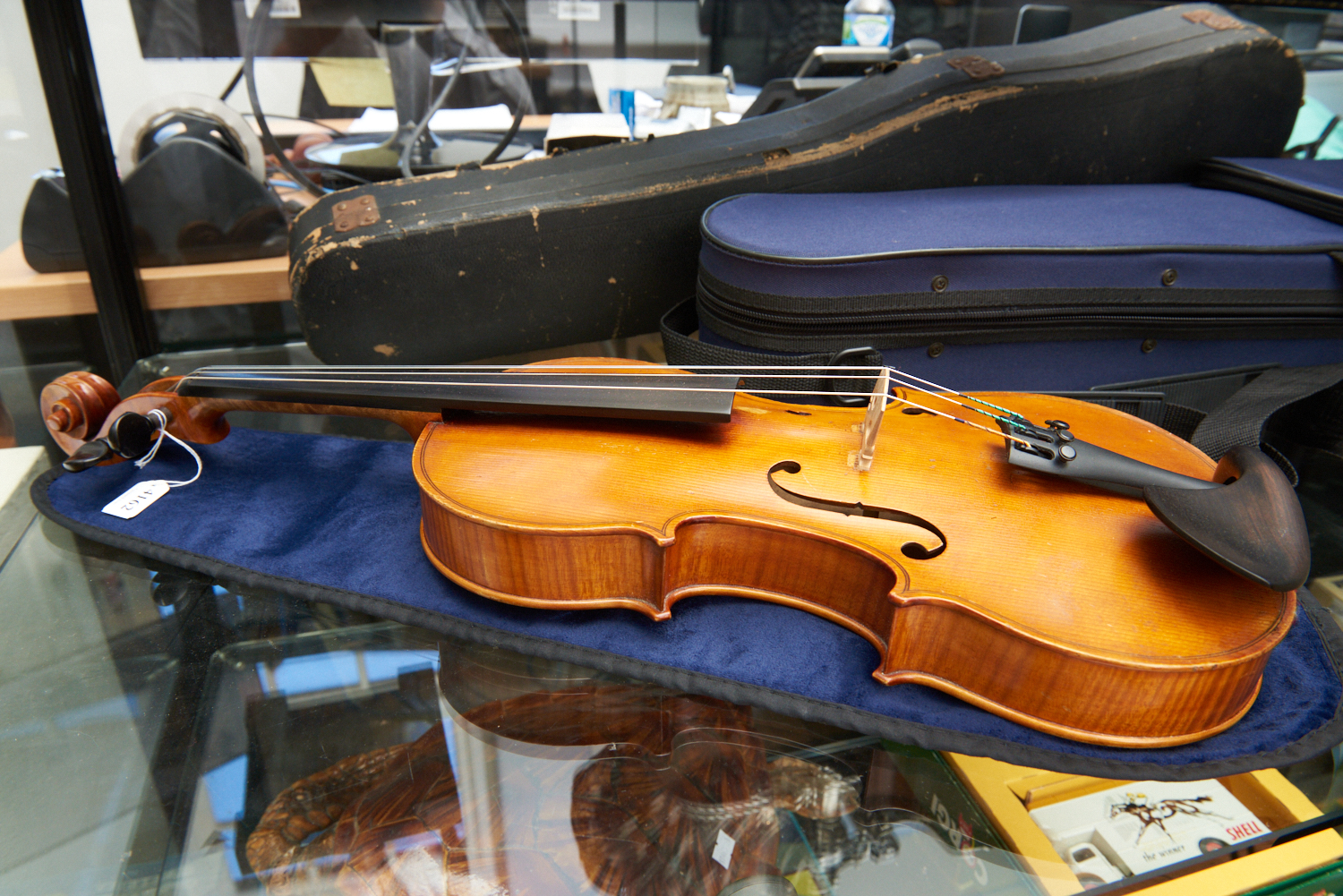 AN ENGLISH VIOLIN BY JOHN M. BELL, IN A MODERN CASE, WITH SHOULDER REST (NO BOW), TOGETHER WITH AN ANTIQUE CASE