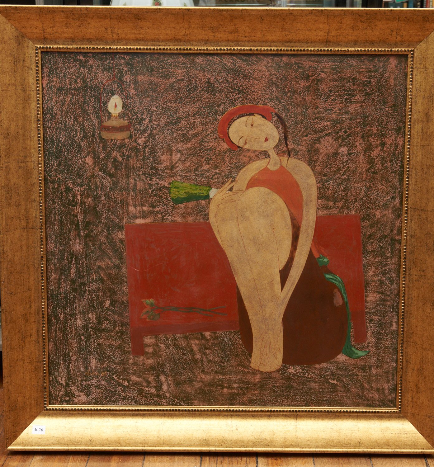 ORIENTAL PAINTING ON LACQUER 67 X 67CM