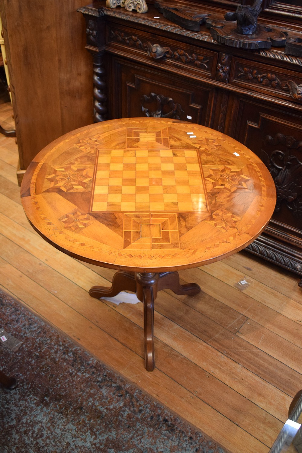 A PARQUETRY INLAID CIRCULAR SIDE TABLE