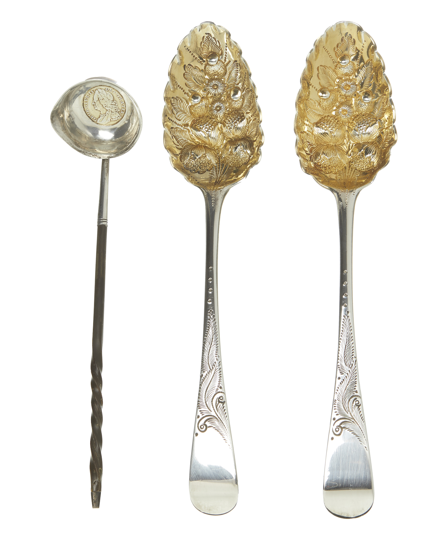 Maker Solomon Hougham, hallmarked London 1808. Together with a coin set toddy ladle circa 1800.