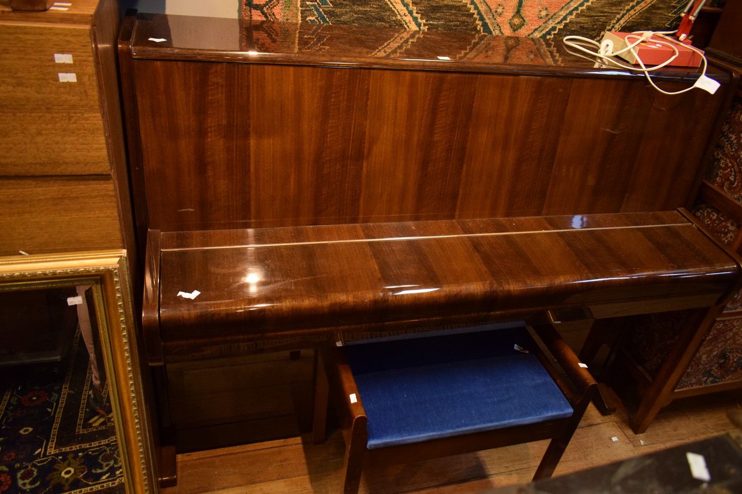 A WEINBACH UPRIGHT PIANO AND STOOL (114H x 143W x 55D CM) (PLEASE NOTE THIS ITEM MUST BE REMOVED BY CLIENTS OR CARRIERS AT THE CUSTOMERS EXPENSE)