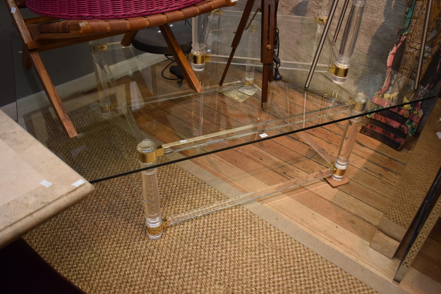 A TWO TIER CONTEMPORARY GLASS AND PERSPEX COFFEE TABLE (PLEASE NOTE THIS ITEM MUST BE REMOVED BY CLIENTS OR CARRIERS AT THE CUSTOMERS EXPENSE)