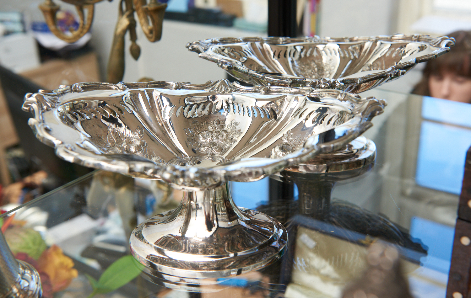 TWO SILVER PLATED COMPORTS HEIGHT 10CM