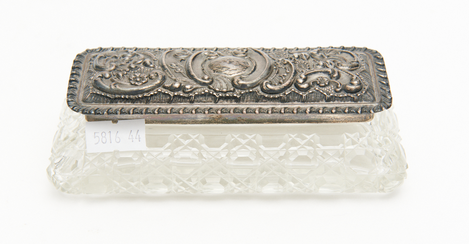 A STERLING SILVER MOUNTED RECTANGULAR CRYSTAL BOX