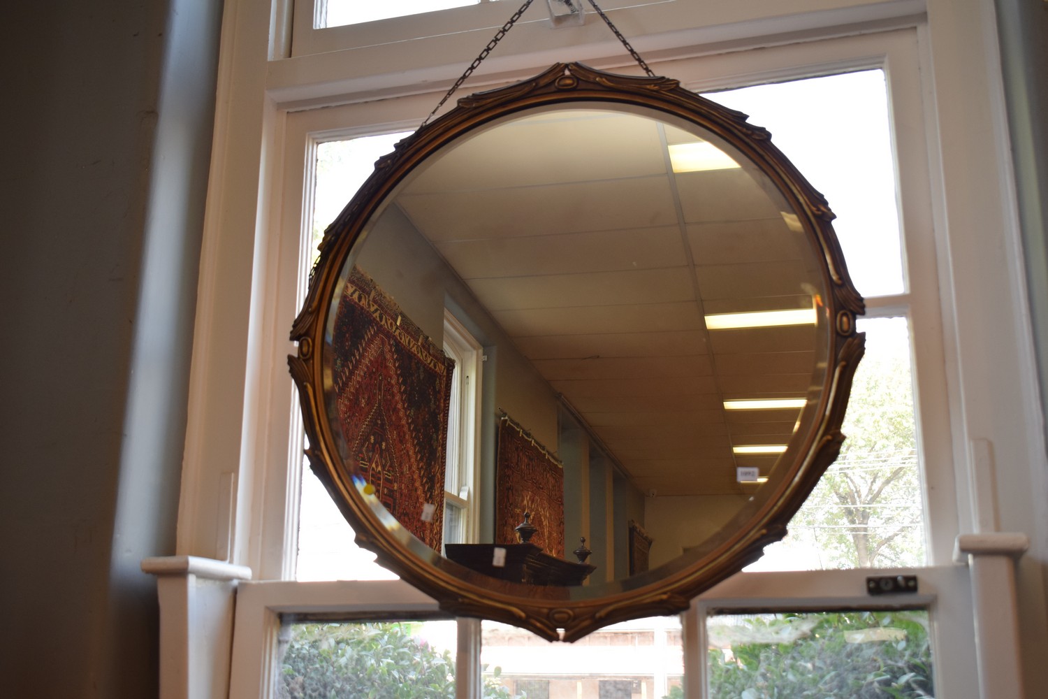 A CIRCULAR GILT EFFECT MIRROR