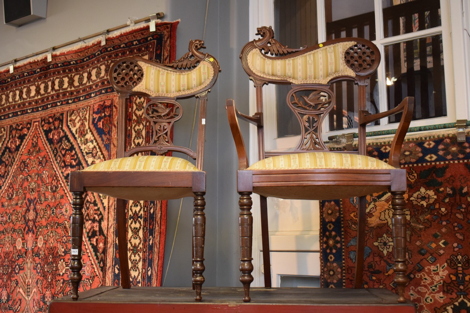 TWO DECORATIVELY CARVED CHAIRS WITH DRAGON MOTIF, INCLUDING ONE CARVER