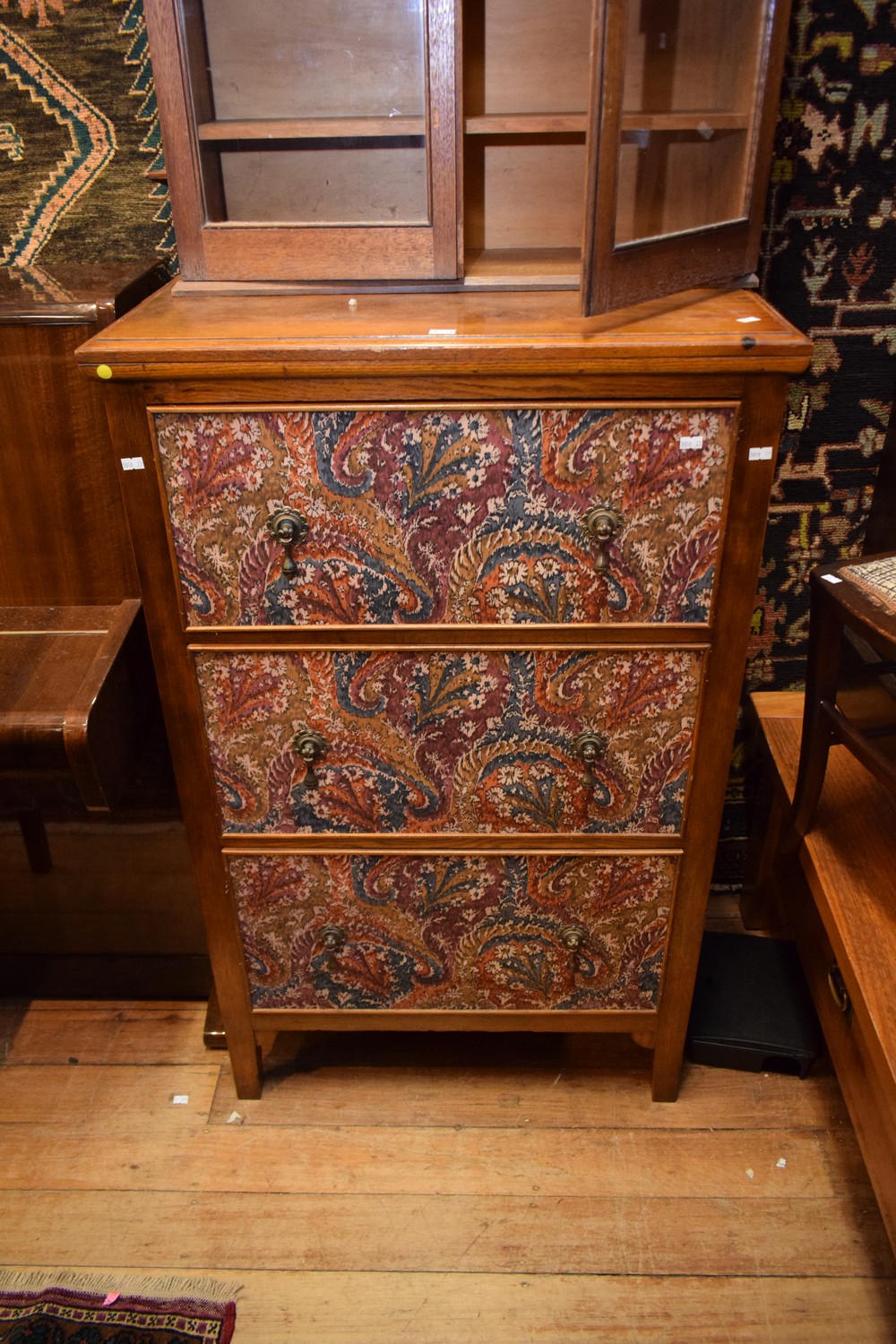 A UNIQUE THREE DRAWER CHEST WITH UPHOLSTERED FRONT (125H x 76W x 49D CM)