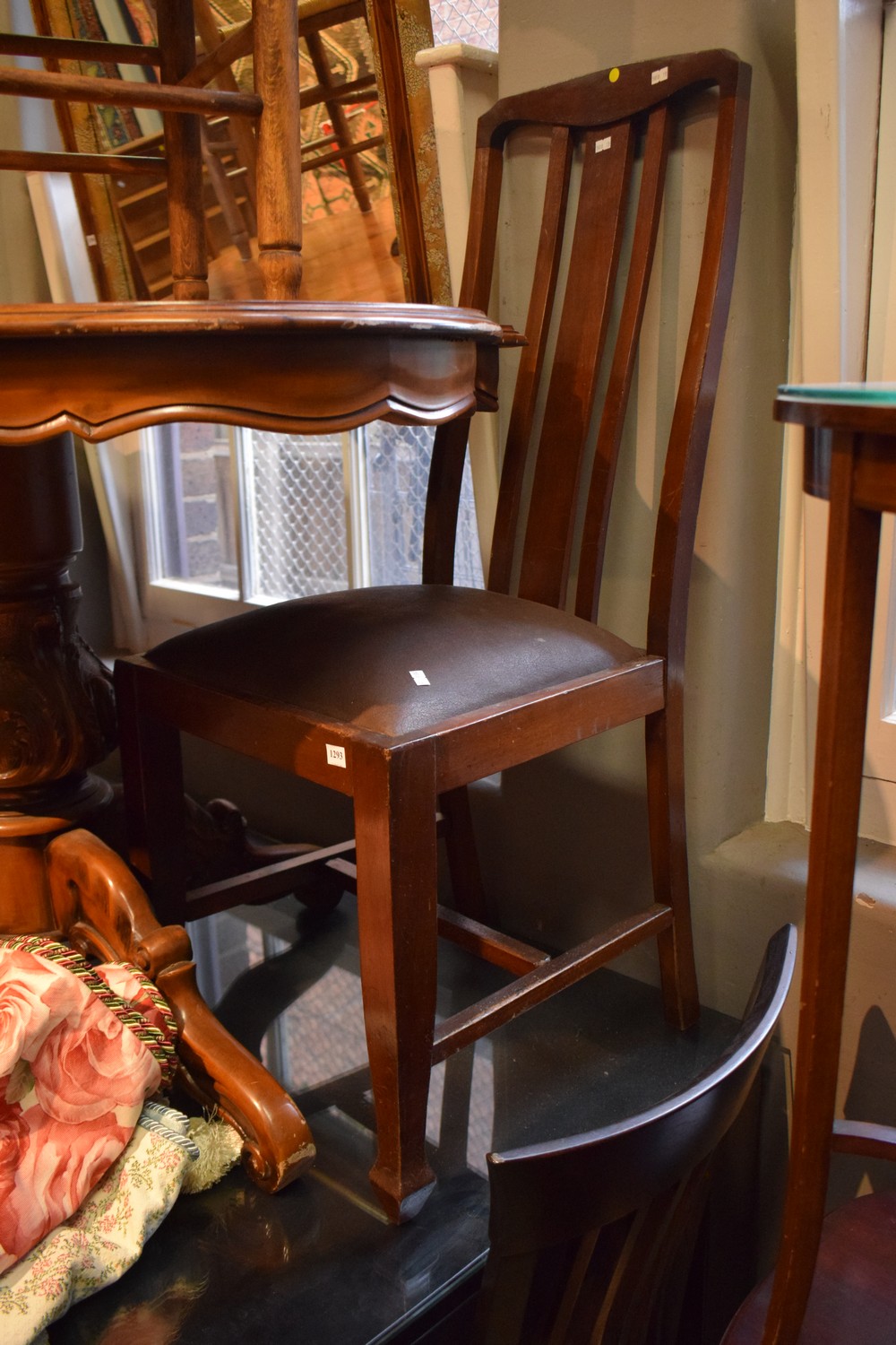 A LEATHER SEATED TIMBER DINING CHAIR