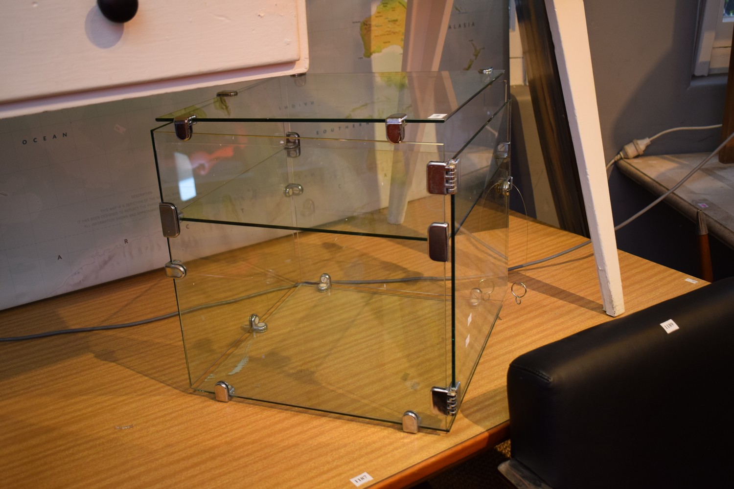 A GLASS DISPLAY CASE WITH KEY (KEY IN OFFICE)