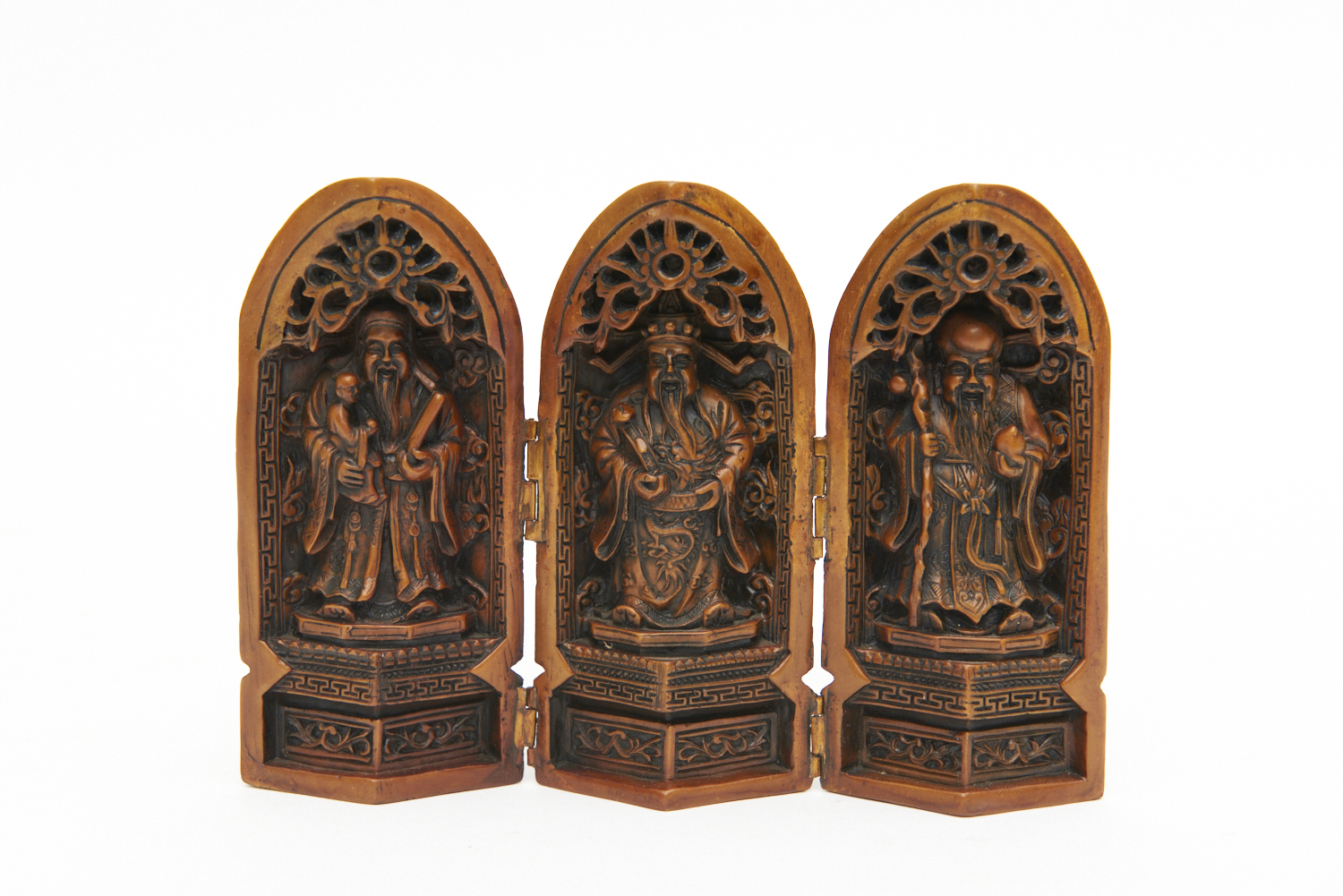 ORNATE CHINESE FOLDING ORNAMENT OF THE THREE SAGES
