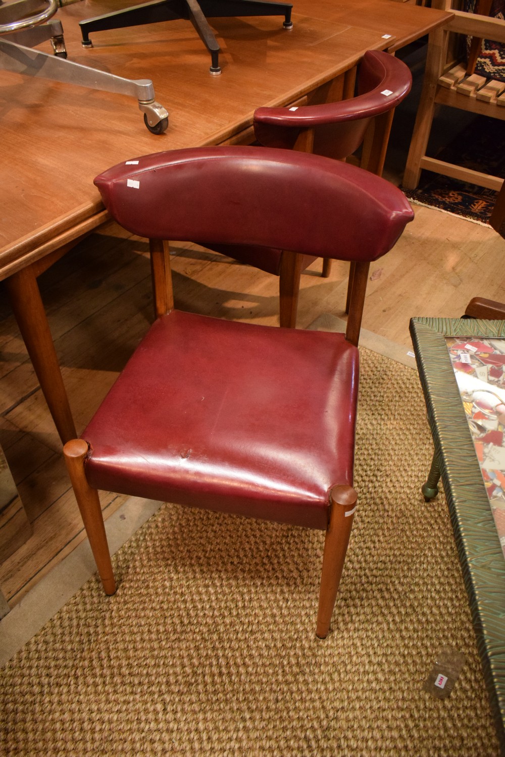 FOUR MODERN TEAK AND VINYL CHAIRS WITH 'U' BACKS