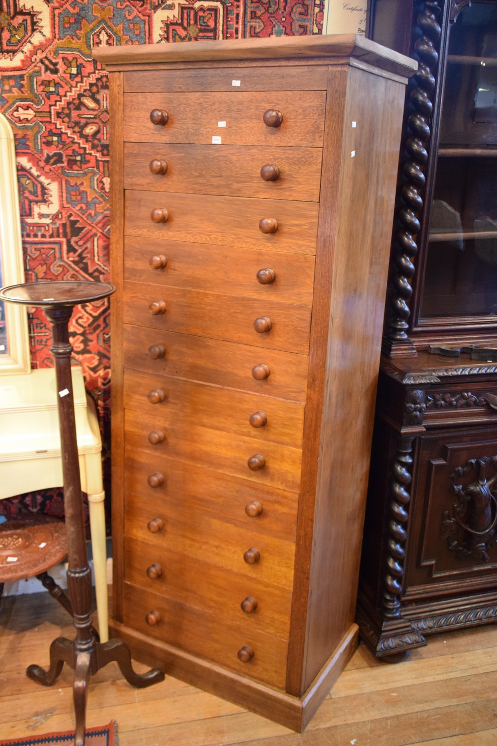 A TALL AND NARROW TWELVE DRAWER CHEST (182H x 74W x 45D CM) (PLEASE NOTE THIS ITEM MUST BE REMOVED BY CLIENTS OR CARRIERS AT THE CUSTOMERS EXPENSE)