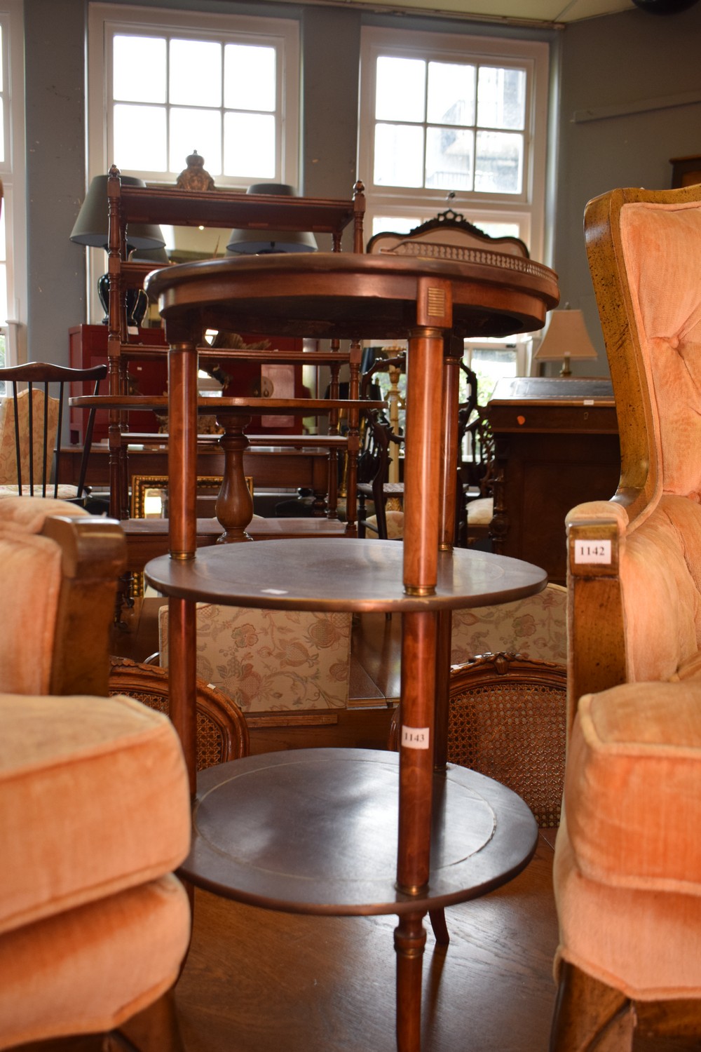 A THREE-TIER EMPIRE STYLE SIDE TABLE